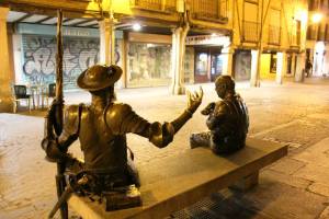 Calle_Mayor_de_Alcala_Escultura_a_Quijote_y_Sancho